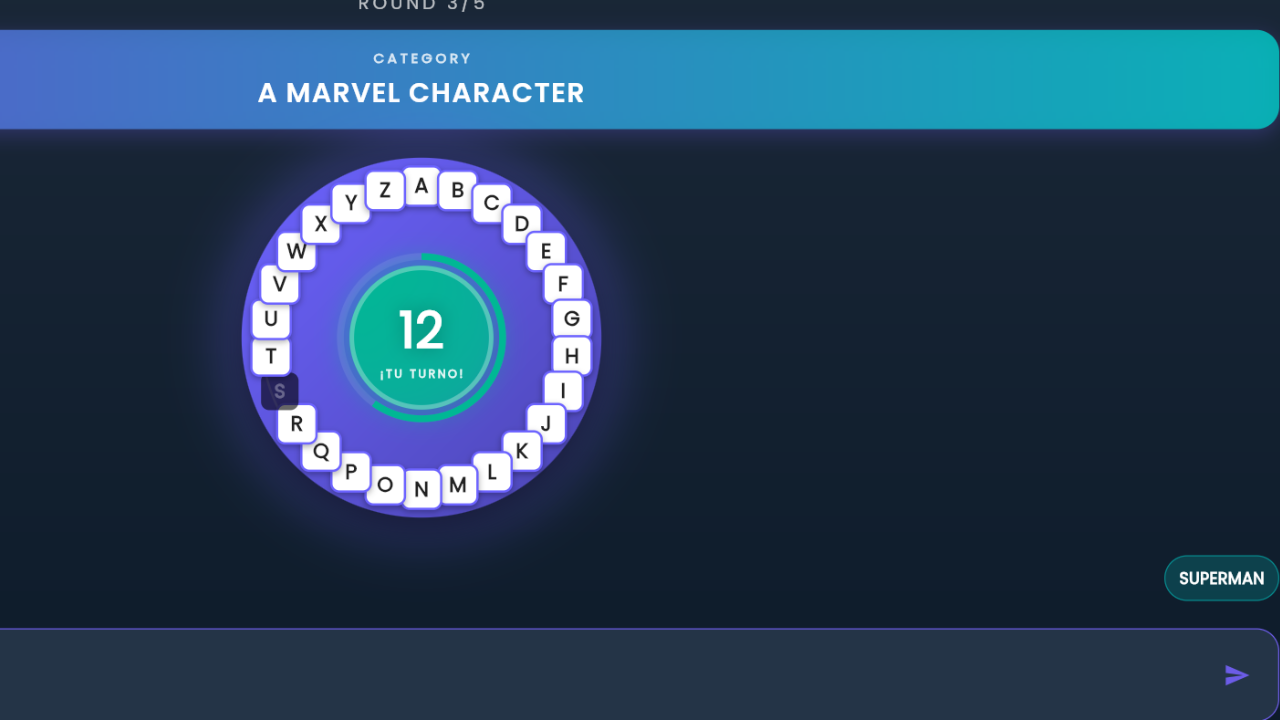 LetterRush party game multijugador contrarreloj donde pondrás a prueba tu agilidad mental y vocabulario contra tus amigos. En cada ronda se presenta una categoría y un tablero con el abecedario completo, tu objetivo es escribir/decir rápidamente una palabra válida antes de que el tiempo se agote, la primera letra de la palabra que elijas quedará bloqueada para todos y no podrá volver a usarse hasta la ronda final. A medida que las letras escasean, la tensión aumenta, intenta no quedarte en blanco y ser el último jugador en pie. Prueba el Nuevo modo Carrera con una modalidad única donde tienes que completar primero tu tablero para ganar